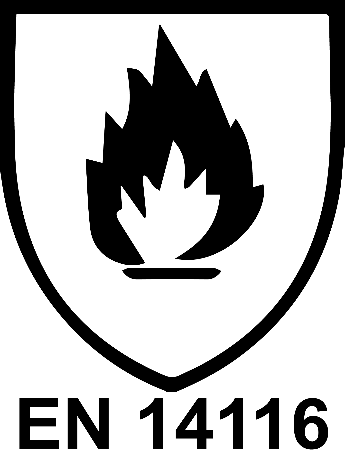 - EN 14116 Flame Retardant Requirements for limited flame spread Index 1 including no spreading of the flame, no flaming debris, no afterglow, a hole may be formed. *Only fabric reach EN 14116 requirement.