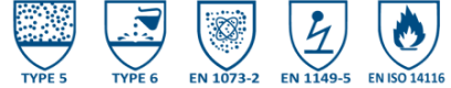 - TYPE 5 EN ISO 13982-1 Dry Particle Suits-Suits for protection against hazardous dust and any dry particles.